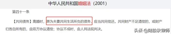其实,从我的角度看,法律的规定无所谓好坏,仅仅是过去倾向于保护债权人,今后更倾向于保护债务人的配偶,君不见,真的有债务人主动自认债务是非法债务,与配偶无关,债务也从未用于夫妻共同生活,可能这是事实,但也有可能这是债务人急不可耐转移财产的嘴脸,至少在过去,法官可以一刀切的认定为共同债务,也不可谓不快。