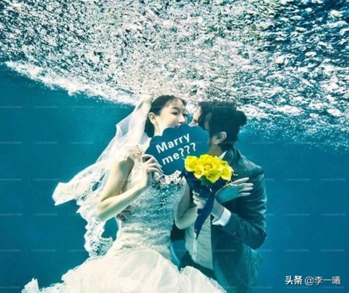 难度稍微高的婚纱照,在水下拍摄有种唯美而又神秘的感觉,即便是在泳池中拍摄,也会呈现不一样的效果!