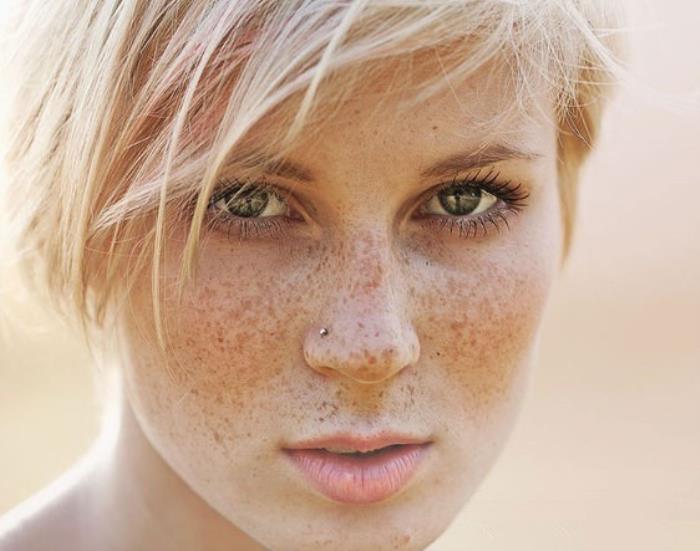 那么雀斑是长在我们皮肤的哪一层呢?很显然不是表皮的角质层,否则市场上那些去角质产品还不卖疯了吗?雀斑最好发的部位是双颊部和鼻梁部,也可泛发至整个面部甚至颈部,大多数是后天发生的,也有部分患者是先天发生的。但是不论先天或后天,都与遗传因素有密切的关系。也就是说,雀斑患者是带有一种特定的体质,具有这种体质的人在外界的一些因素的作用下,比如年龄的增长,日晒,雀斑逐渐显现出来。
