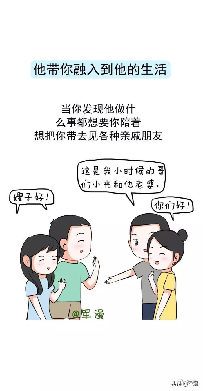 他带你融入到他的生活:当你发现他做什么事都要你陪着,想把你带去见各种亲戚朋友。