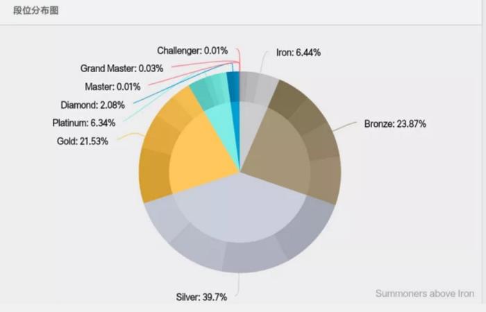 大家只要查一下段位比自己高的玩家占比多少,就能算出自己在全部LOL玩家中大概排名百分之多少,低于40%就是合格,如果低于20%就是算高玩了!