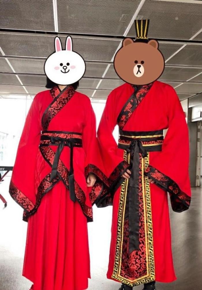 在家乡摆完酒席,穿的是西式礼服,再参加阿里的婚礼,胡娟又穿上了量身定制的中式喜娘装,更是胡娟的最爱,“我平时就是喜欢穿汉服”。