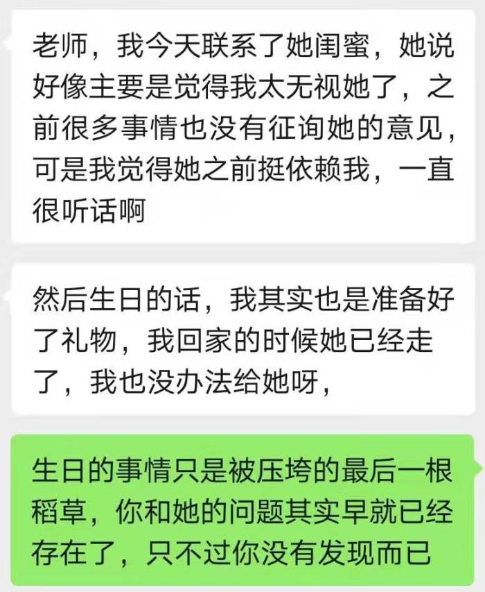H和前女友存在这样的问题:H是个直男,虽然他享受着女友的体贴和温暖,却从来没有一句感恩或赞美,前女友觉得很委屈,对爱情美好的向往产生质疑。以下是前女友的闺蜜给到H的反馈。