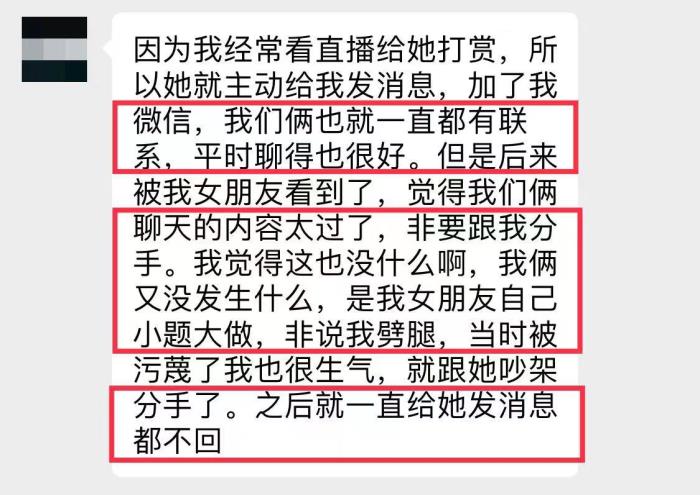 就刚刚这个案例而言,大家是不是会觉得,他们分手的直接原因,应该是因为这个男人跟女主播暧昧不清,所以他女朋友对他"劈腿"的行为感到失望,而选择了分手?