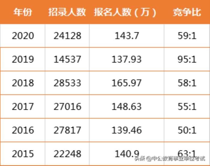 2020年国考报名已经结束,本次国家公务员考试共招24128人,同比去年增长66%,报名过审人数为143.7万人,同比去年增长4%,竞争比为59:1,虽然较去年大幅下降,但59:1的平均竞争比,也是让无数考生瑟瑟发抖。