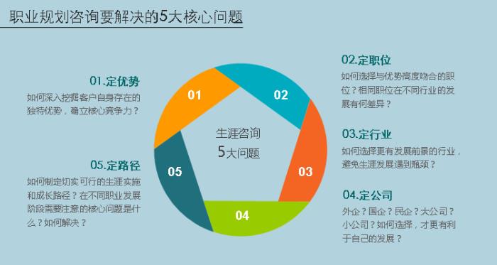 在我们深度咨询中,涉及到具体规划时,还要根据个人事业愿景、优势特长、专业技能、成长经历、职业价值观、政治因素、经济因素、社会因素等各种情况进行综合考量,才能得出具体的结论。