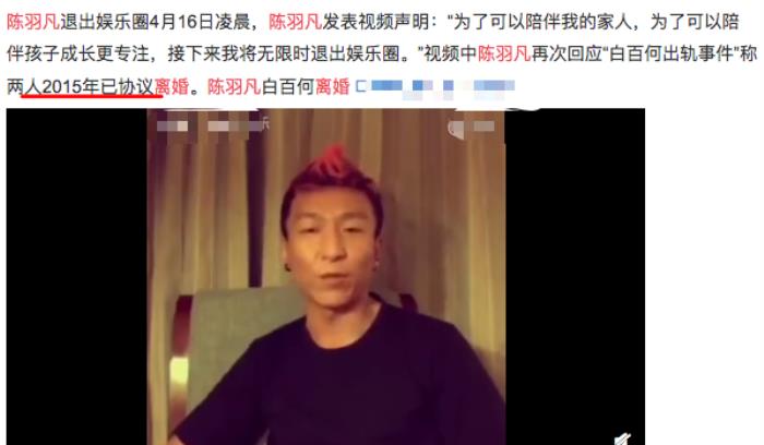 而就在舆论矛头直指白百何出轨,替陈羽凡鸣不平时,陈羽凡却发文称两人其实早在2015年就已经协议离婚。