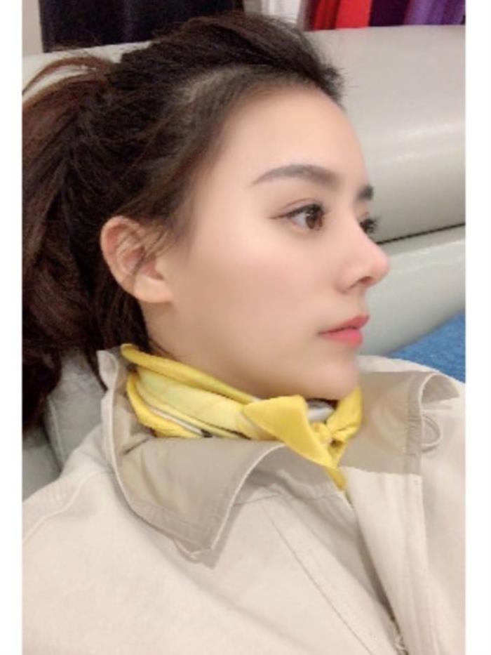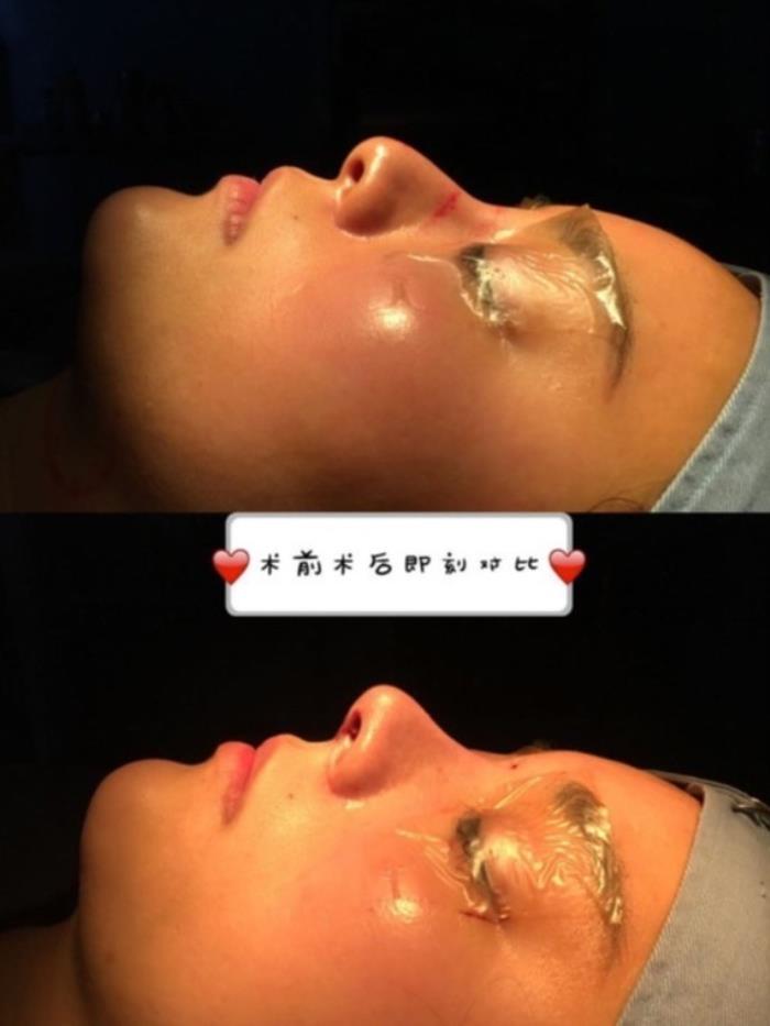 侧面观:鼻子长35mm,鼻额角142°,鼻尖低于鼻梁高度2mm。
