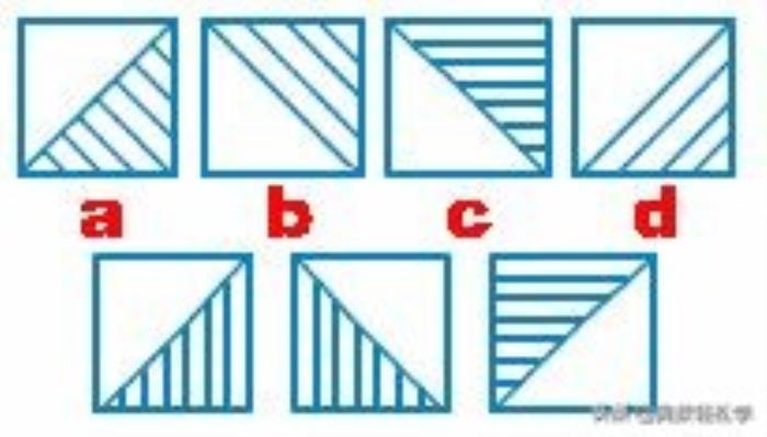 题3:在下列图中,已知上一行a、 b、 c、 d四个图形中,有一个图形与下一行中的某个图形最为相似。那么,它到底是哪一个呢?
