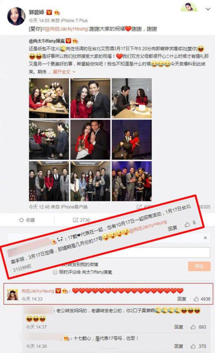讨论:向佐与郭碧婷的大喜之日会不会真如网友预料定在某月17号举行呢?