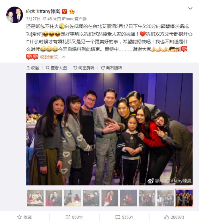 近日,娱乐圈最有看头的瓜,莫过于来自星娱乐集团太子向佐和娱乐圈女神郭碧婷的订婚喜讯啦。