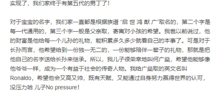 何猷君儿子的名字也大有来头。