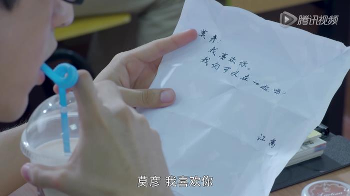一次上课之前江离将写好的纸条放在莫彦桌子上,表达了自己的爱意,很简短的一句话“莫彦,我喜欢你,我们可以在一起吗?——江离”,可以说非常直接。