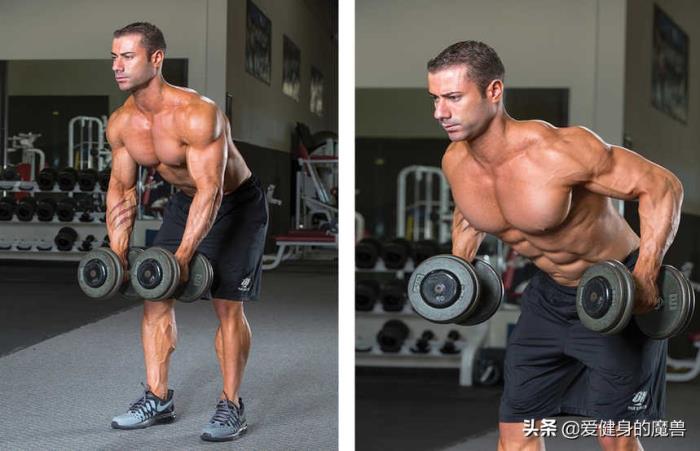 2. 手掌旋转的双臂哑铃划船