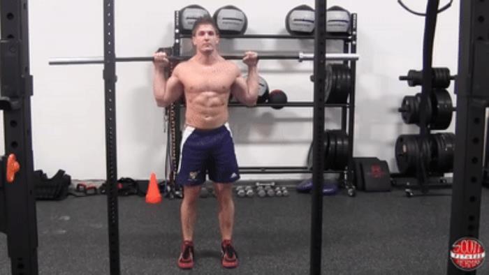 以肘部带动杠铃完成动作,在顶峰挤压背部肌肉