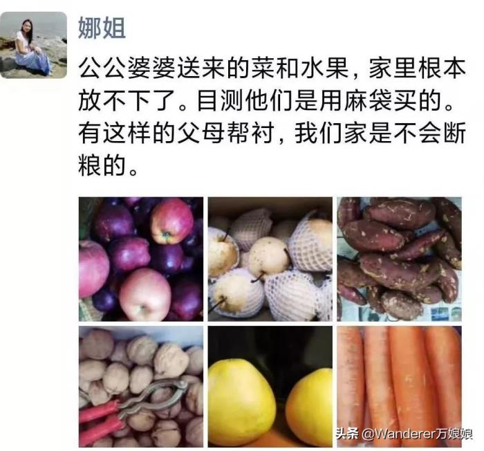 原来,这周末我回家,随口说了句,忙起来时连买菜的时间都没有。公公婆婆听罢,跑到水果蔬菜市场,买了一袋又一袋,一箱又一箱,给我们送来。
