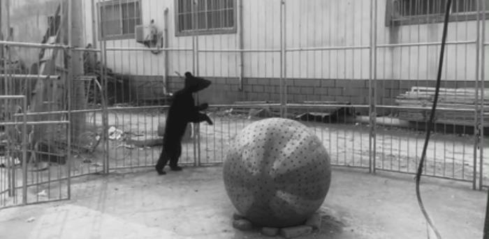 23日下午,他站在动物园里,隔着栅栏,掏出装有硫酸的玻璃瓶,倒向正在玩耍的两只黑熊。