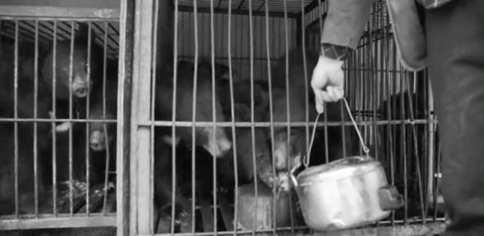 即便是喝水,也是几只黑熊,挤在一个狭小的笼子里,争先恐后地抢水喝。