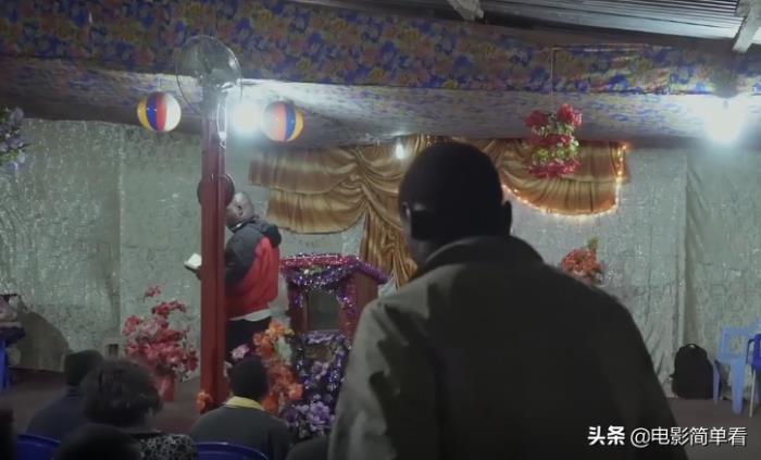卸掉了剩下的煤袋,自行车只剩下了两个车轱辘,他坐在路边,感受着这座小镇的律动,跟着音乐节拍晃动着身体,还一边跟着哼唱,脸上已看不出这几日的劳。一路下来,许多酸楚,但为了盖房子,总算迈出了一小步。歇息完了,便循声来到一个棚里,这里聚集了不少人,他们一边拍手,一边歌唱,沉醉在自己的世界中,没有人注意到他。这里的人素不相识,只因同一个信仰聚到一起,这是他们短暂逃离现实的精神港湾。