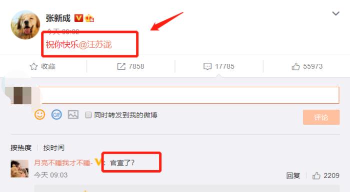 迷了迷了,大型迷惑现场。7月29日,青春小生张新成直接@汪苏泷,配文“祝你快乐”,四个大字干净利落,令人迷惑,引人遐想。