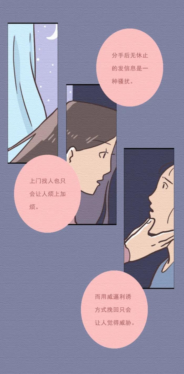 正如上文所说无休止的发信息是一种骚扰,上门找人只会让人烦上加烦,威逼利诱则会让人觉得被威胁、被控制。