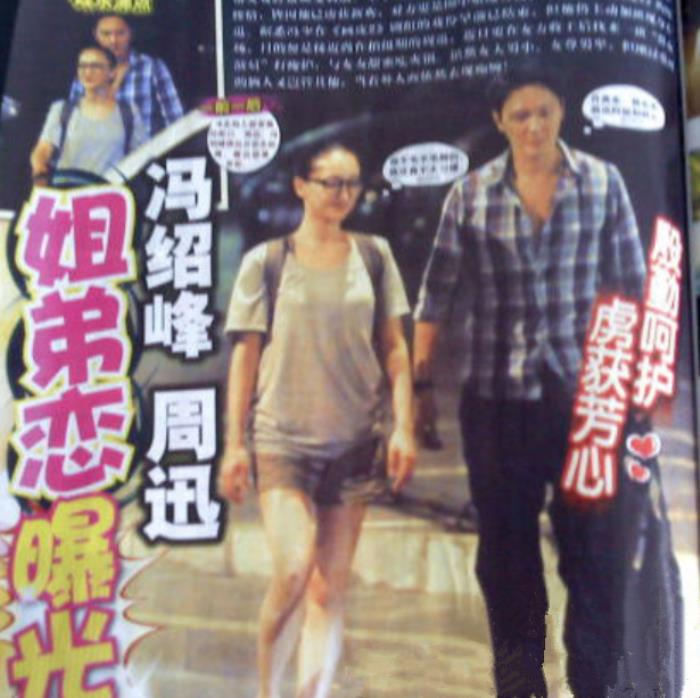“周迅与冯绍峰的姐弟恋情曝光”这是某位网友拍到一张杂志照片上面的标题,上传到微博上。
