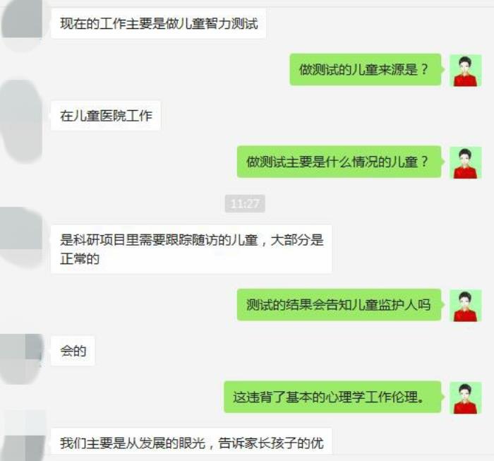 智商测试(化名):现在的工作主要是做儿童智力测试