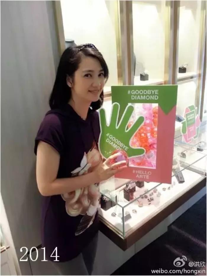 2013年,上了妆的洪欣看起来还是很美艳,除了显得更精致外,和素颜时的差别并不大。