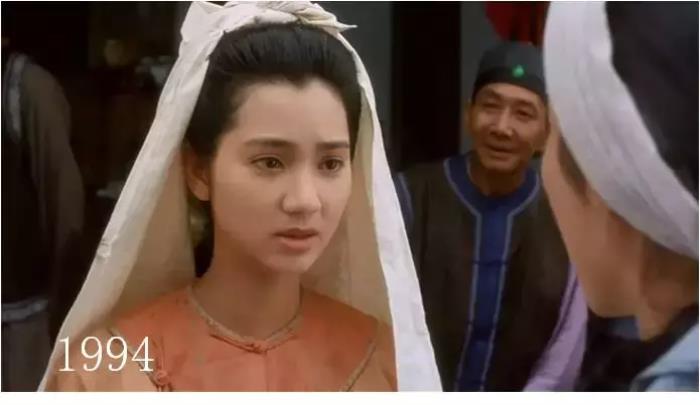 1994年,洪欣的气质其实有点矛盾,穿现代装的时候,会让人觉得她是个古典美人,但是换上古装,身上的异域感又让人觉得有点违和,这和迪丽热巴倒有点相似。但是不可否认的是,无论是现代装还是古装,都很美。