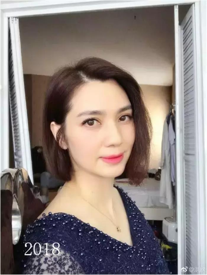 2018年,由于脸部肌肉松弛,洪欣的法令纹看起来比较明显,但是气质真的没话说,女神范十足。