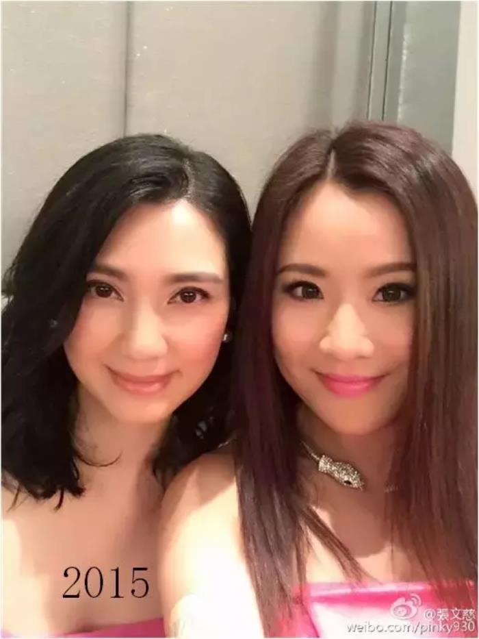 2015年, 看看洪欣和其他人的合照,虽然身旁的女生看起来明显年轻一点,但是无论是五官还是气质,洪欣都更抢眼。而且洪欣的长相是属于有分辨度的,能让人一眼记住。