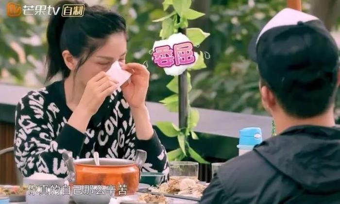 当袁咏琳焦虑着会被淘汰而大哭,她也不禁掉下眼泪: