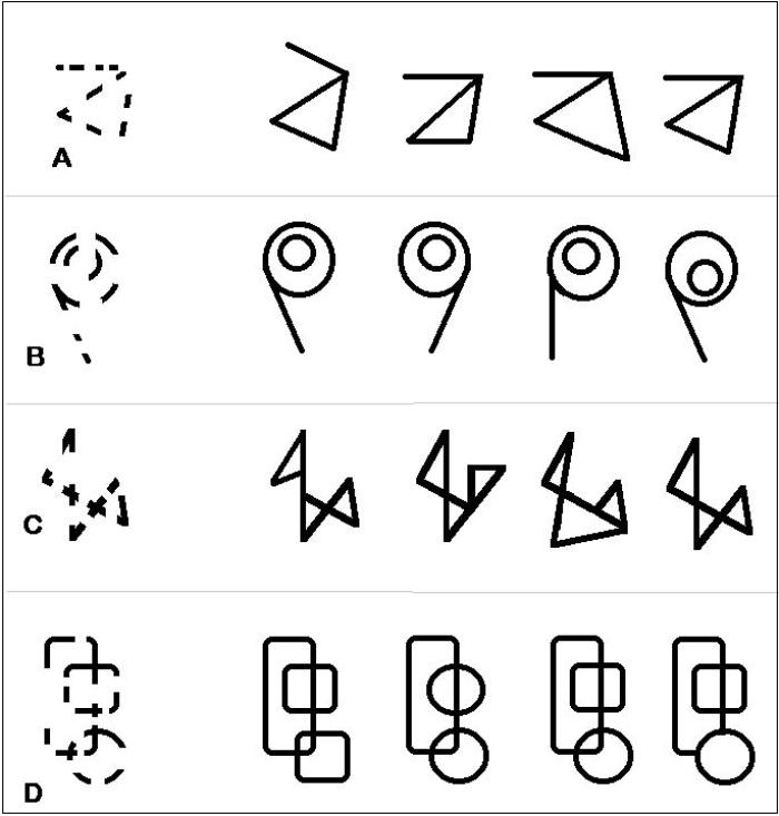 测试题2:根据每行左侧的虚线图,在右侧选出相应的图片。