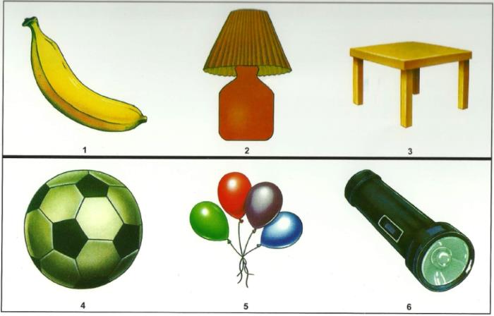 测试题2:请从第二行的物品中挑出一个,与第一行凑成一组,并说出这3个物品的共同点。