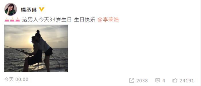 7月11日零点,杨丞琳在个人社交网络平台晒出与男友李荣浩在海边的亲密合影,为其庆生“这男人今天34岁生日,生日快乐@李荣浩 ”。照片画面浪漫唯美,有网友看后赞道“请你们原地结婚,谢谢”。