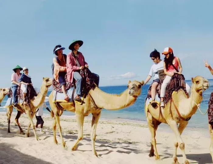 沙滩骆驼,解锁巴厘岛新姿势。骑骆驼不一定要在沙漠,沿巴厘岛努沙杜瓦著名白沙滩悠然漫步,悠扬的驼铃和海浪的声音更配。