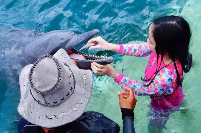 海豚乐园,与海豚更亲密接触。这里由于国人较少而相对小众,却因可以和海豚更多亲密互动而评价很高,同时还可以感受巴厘岛著名黑沙滩。