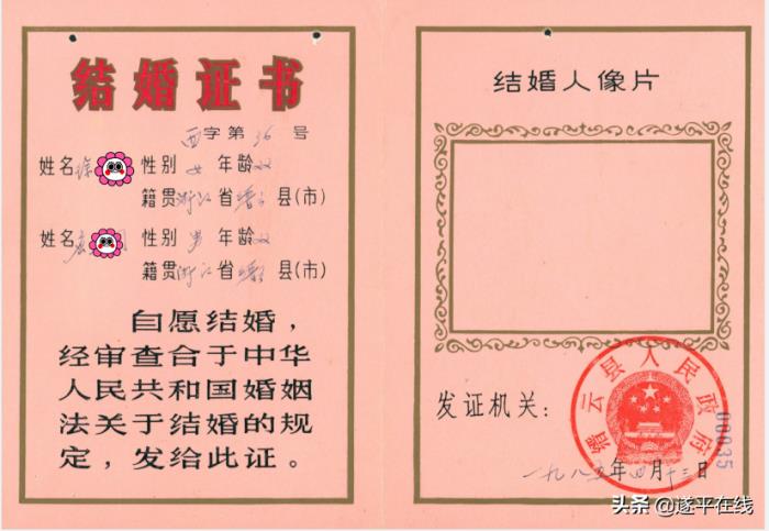 改革开放后,结婚证用途越来越广泛。为方便携带,结婚证由奖状式变为护照式,添加了双方的照片,复杂的图案、醒目的语录口号也随之取消。