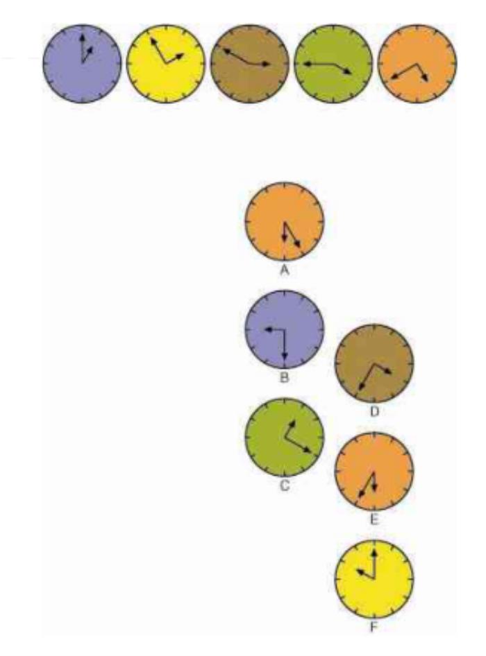 根据一系列钟表之间的逻辑关系,判断下列选项中,那个选项可以延续这个系列?