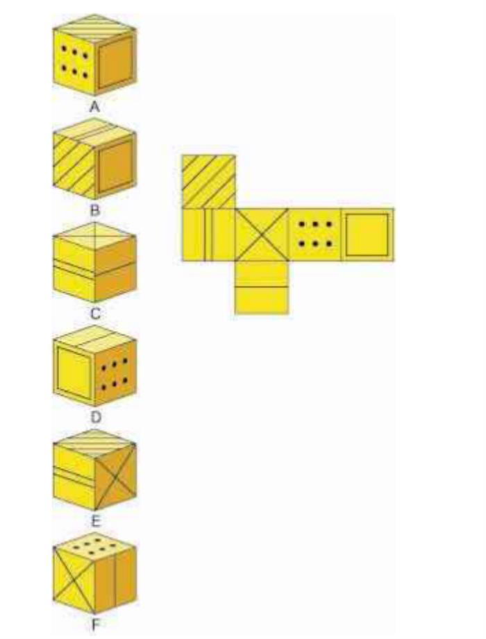 左边各选项中,哪一个不是由右边的平面展开图折成的?(PS:注意看题目)