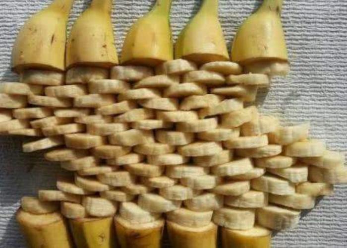 摆成编织花篮的形状,但是大小不一