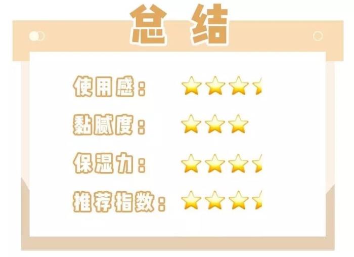(“黏腻度”、“出油情况”两项,⭐️越少越好)