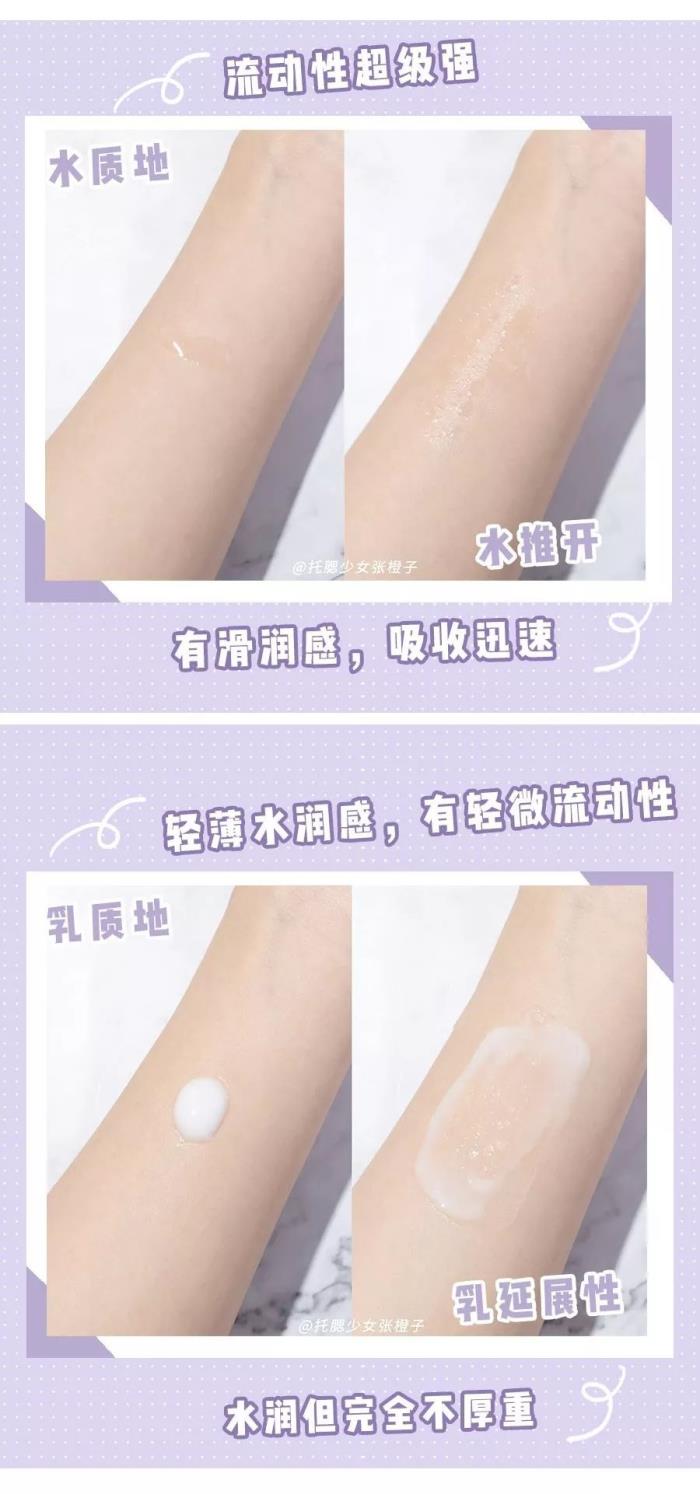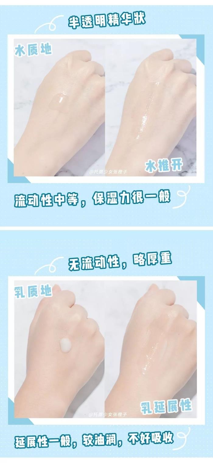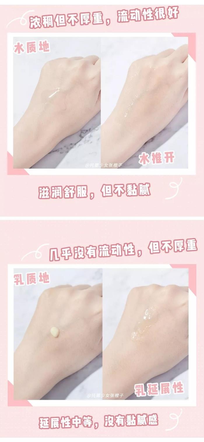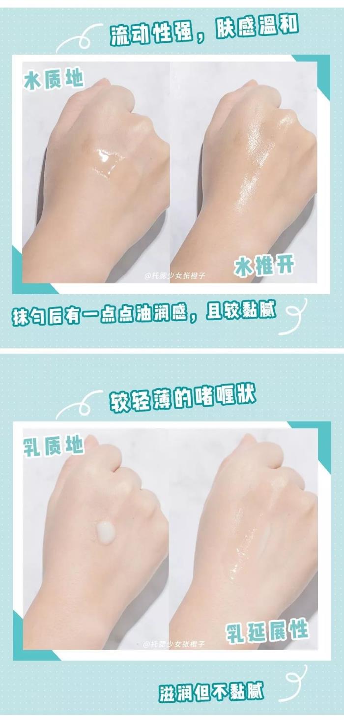 两者都很轻薄水润,但气味并不治愈,水的酒精味有、熏人,乳也不是牛油果味,而是皮炎平味