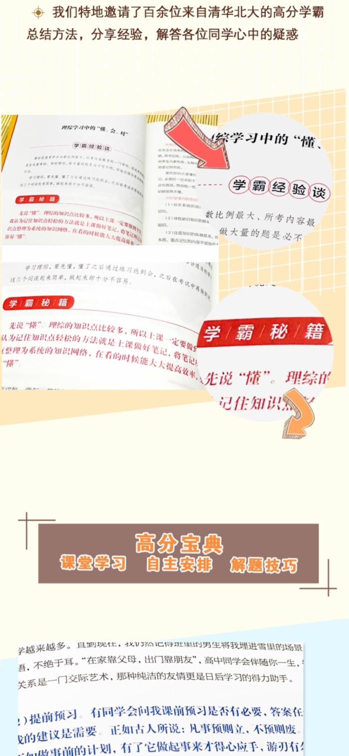 正因此,这套《清华北大学霸日记》丛书更是实用性超高!全书收录了百余位来自清华北大的高分学霸的学习方法,不仅总结了方法,同时这些学霸们还分享了经验,解答各位同学心中的疑惑。同时,整套书的内容又是精华中的精华, 可供大家在学习中借鉴参考。