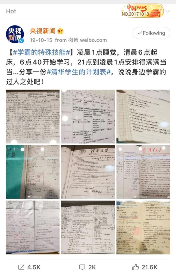 这不,之前央视就曝光过一位清华学霸的每日计划表,瞬间冲上热搜。