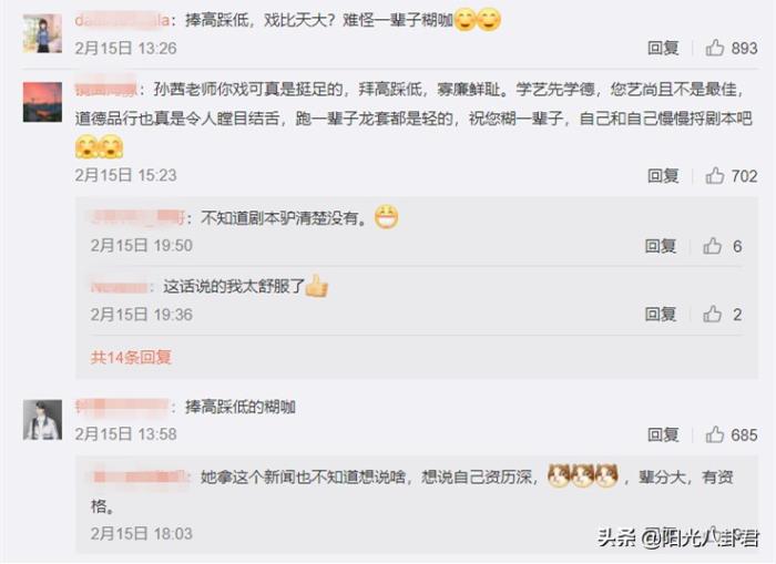 孙茜的这条微博没有指名道姓,看似也只是对源新闻本身的感慨,但孙茜在这个关键时期出现这样的举动,难免会让网友对号入座,很快,孙茜的微博下就涌入了许多网友,留言的内容也是褒贬不一。