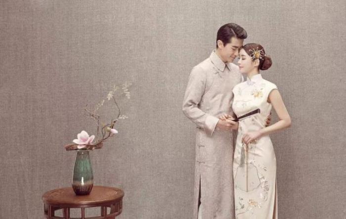 张若昀和唐艺昕的婚纱照,张若昀一袭中式长衫文质彬彬,儒雅的少年,唐艺昕则是一袭粉色的旗袍上衣搭配蕾丝半裙,甜美又娇俏,手持捧花,满脸的幸福,两个好看的人儿端庄又可人,张若昀取了备忘录里的女孩,让人又相信了爱情。