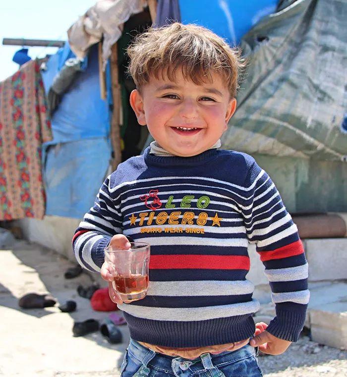 这是一个生活在黎巴嫩的叙利亚难民小孩。他拿着杯子笑着说:“如果我有超能力,我想要飞。我会告诉其他世界各地的小朋友来和我还有我的姐姐一起玩,一起喝茶。”