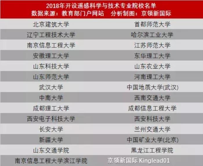 目前我国有20余所学校开设此专业,每个学校侧重的方向不尽相同,譬如北京航空航天大学的遥感专业侧重仪器类航空航天遥感,首都师范大学侧重环境遥感,北京建筑大学则侧重于建筑测绘、城市遥感。