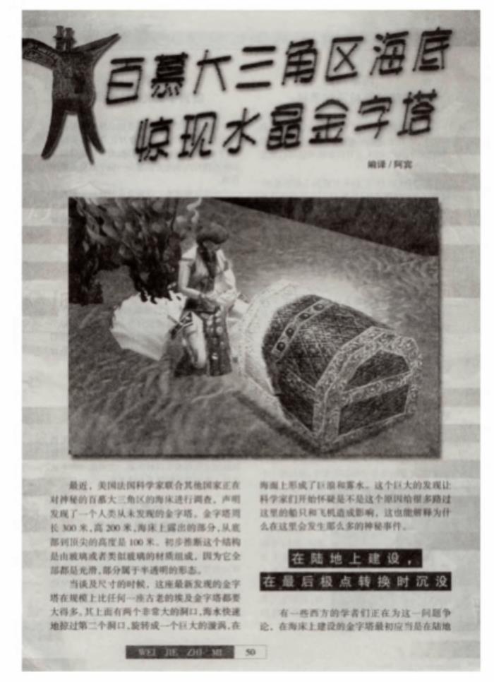 走在20年前的大街上,大大小小的书报杂志摊,总会吸引一群求知欲旺盛的青少年。那些打着“世界未解之谜”招牌的报纸杂志,也总是摆在最显眼的地方。而“百慕大三角之谜”,永远是“封面之王”。